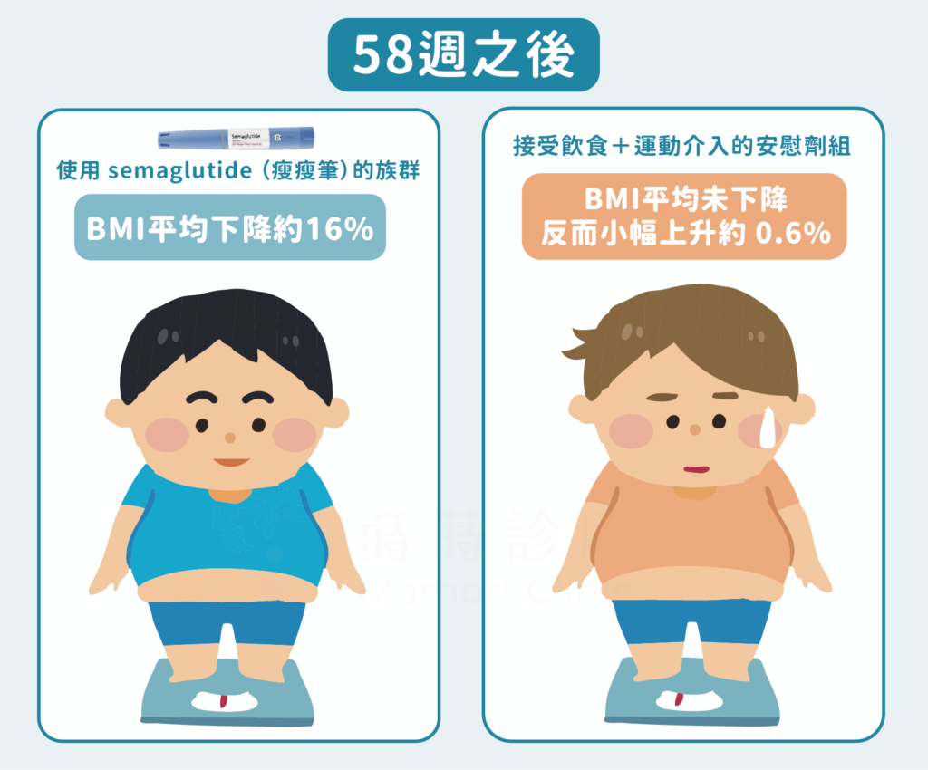 ▪ 使用 semaglutide (瘦瘦筆)的族群→ BMI 平均下降 約 16%